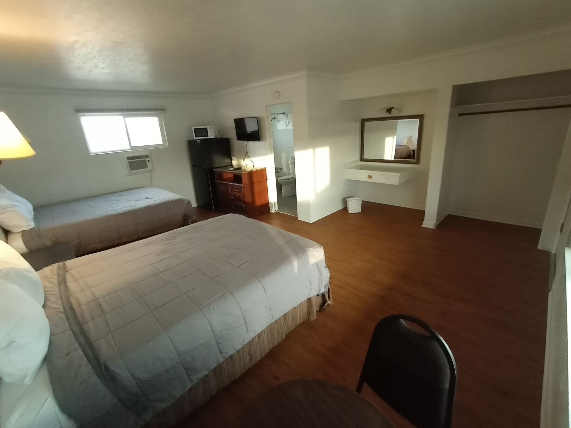 Our rooms with two queen-sized beds are ideal for families, vacationers, and those traveling for work. With ground-level parking and multi-room units, you’ll find a safe, family-friendly atmosphere in any of our 12 centrally located properties. Starting at $275 per week or $75 per night, our double rooms offer a cost-effective solution with added convenience. Perfect for short-term or extended stays, you’ll have access to everything you need for a comfortable stay.